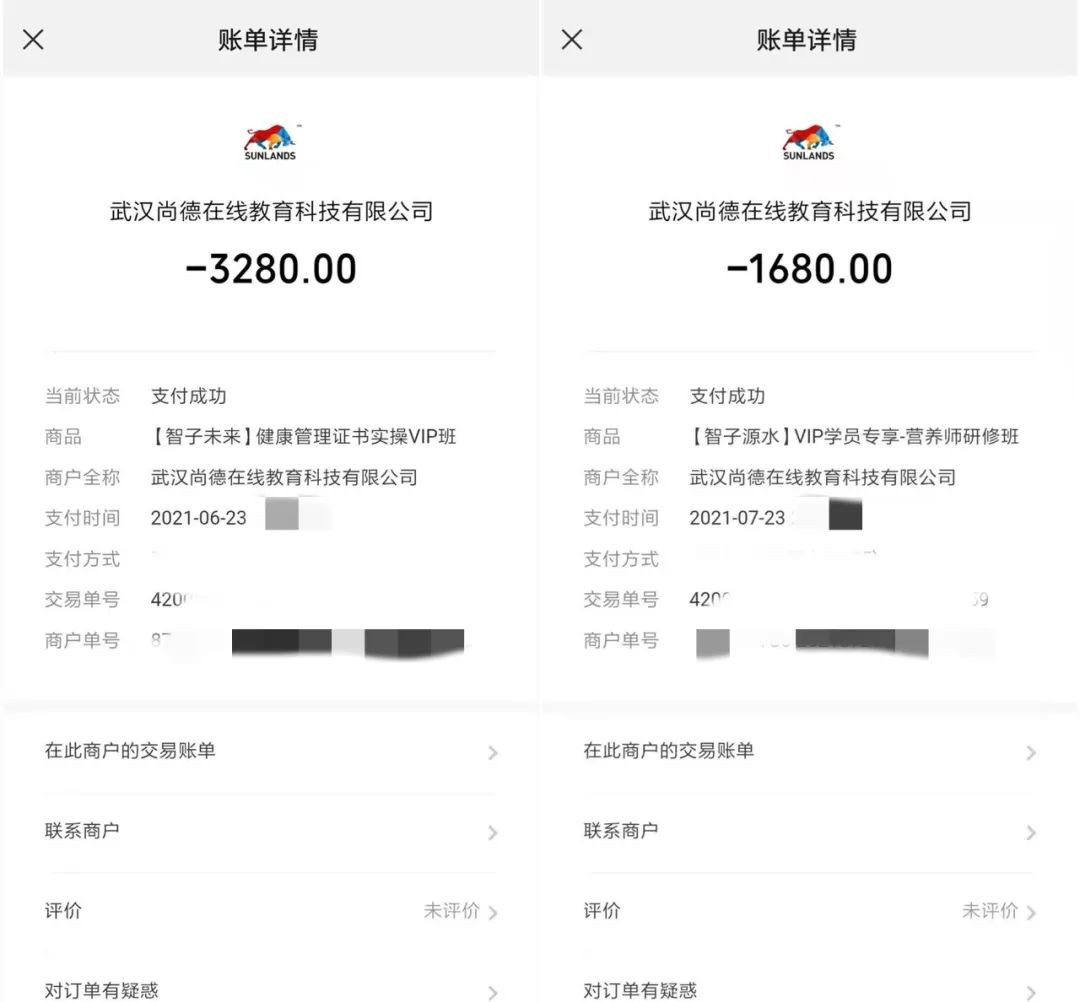 在老師的推薦下,丁雯在一個月內先後報名了3280元的“健康管理證書VIP班”、1680元的“VIP學員專享營養師研修班”。