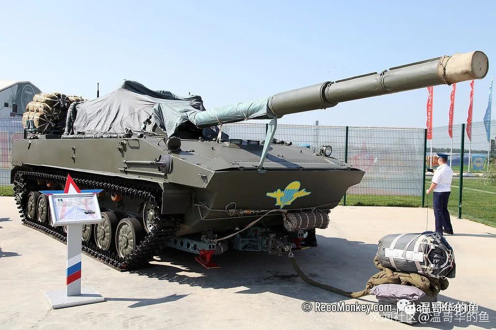 2S42“蓮花”空降自行迫榴炮也開發自BMD-4平台,計劃到2025年全部替代2S9“九度音-S”自行迫榴炮。它的車體加長,安裝了輕型裝甲車輛中非常罕見的7對負重輪,在炮塔兩側的煙霧彈發射筒下還安裝有激光告警系統,炮塔頂部安裝有遙控武器站,防護能力更強。