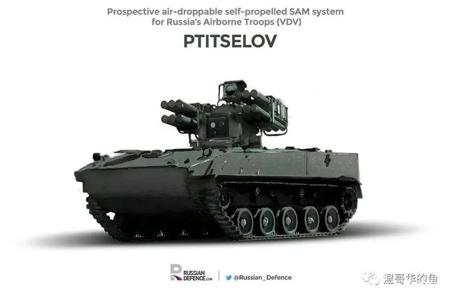 “捕鳥者”空降自行防空系統採用BMD-4M底盤,計劃於今年入役。該系統為模塊化設計,防空模塊重量3.5噸,也可以搭載在MT-LB裝甲車、BMP-3步兵戰車和BTR-82A輪式裝甲運輸車上。系統包括雷達和光電觀瞄系統、火控系統和12枚9M340“松樹-R”(SA-X-25)近程防空導彈,可自動/手動識別目標,以被動模式獨立作戰。導彈採用無線電指令+激光駕束導引體制,飛行速度2.6馬赫,射程約9.6公里,射高2米-5千米,反應時間5秒。