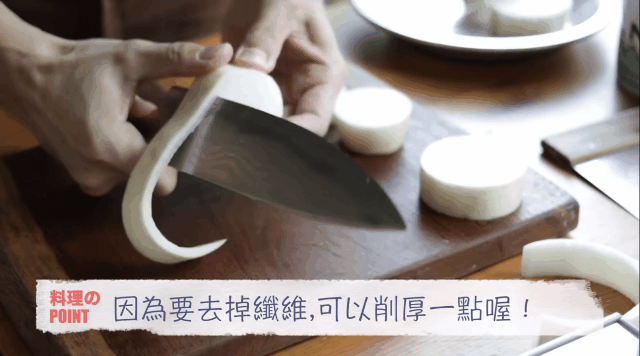 譬如關東煮的招牌食材蘿蔔的處理,就比想象中複雜得多,在孔老師的書中也有這樣一段描述: