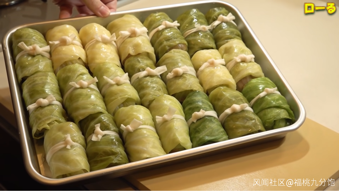 圓白菜肉卷要自己調好肉餡一個個包起來;