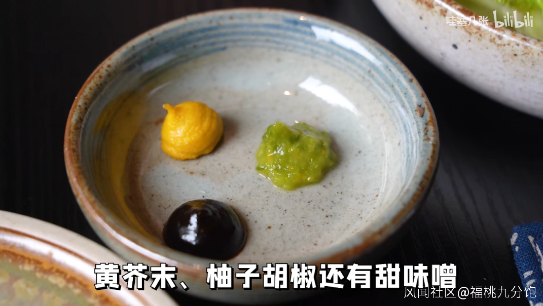 最後就是蘸料,我也是很久之後才知道,日本的關東煮是有蘸料的。因為最早來自於味噌田樂,所以關東煮的搭配蘸料也有味噌,除此之外還有柚子胡椒和黃芥末。