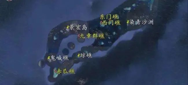 赤瓜礁、鬼喊礁和瓊礁三個島礁的大致位置分佈