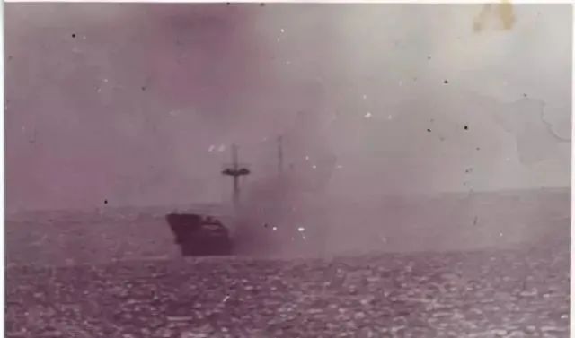 越南軍艦向我軍艦開火後在海面上激起的水柱