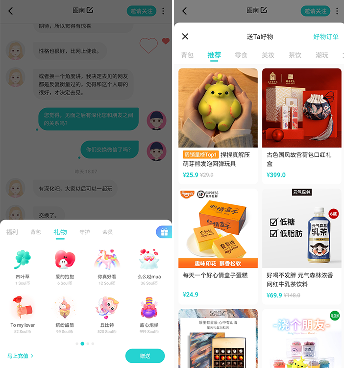 肯定也不僅僅只有X趣。去年4月就有過一款主打酒店陌生人社交的應用“趣住”被指存在大量的拉皮條和色情交易信息,引發大量媒體關注。包括賽道內的標杆產品Soul,其核心場景也是陌生人匹配,同樣也有限制用户匹配次數、鼓動用户刷禮物、買禮物來解除聊天限制的機制。