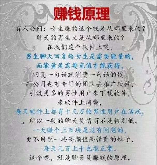 姐姐可能被我的誠意感動了,在我表示自己也想靠聊天賺錢後,她大方告訴了我兼職渠道,還有一份詳細的陪聊資料。