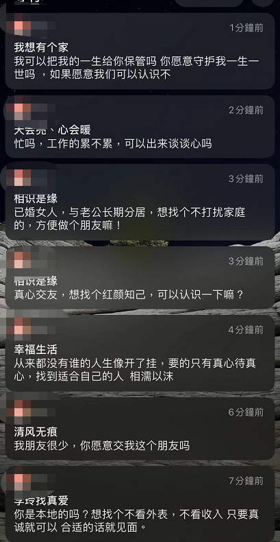 這些聊天的開場各不相同,但套路總體和我看到的學習資料完全一致,很多都是是軟色情:問我要不要聊一些私密話題,要不要私密視頻,有的則光明正大給自己取名叫“離婚少婦”,暗示想可以和我進行深入交流…