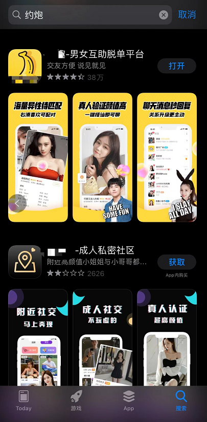 由於這些視頻小廣告內容過於露骨,於是我靈光一閃,想到了直接在應用商店裏直接搜索更露骨的關鍵詞。
