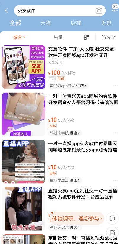 某寶上,有店鋪專門負責交友軟件的開發運營以及維護工作,只需要一位UI設計師、兩位IOS和安卓程序員,外帶一位後台程序員,就可以支撐起一個交友軟件的獨立運作。