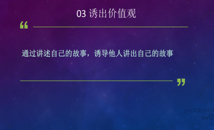 通過這種價值觀誘導,就能順利讓對方主動講出自己的故事。