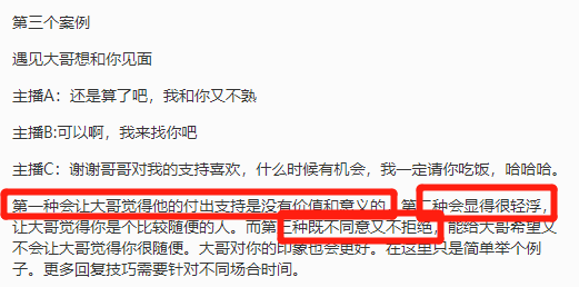比如文庫排行第一的《主播聊天的話術技巧》,就從心理學角度概括運用出了五種文字、語音視頻中的套話技巧,詳細介紹瞭如何進行角色扮演,如何讓聊天富有幽默感、聯繫感,以及如何豐富運用自己的肢體語言。