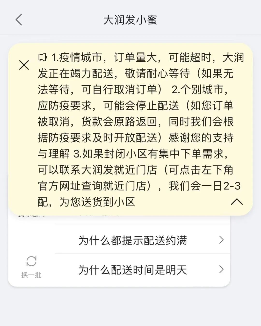 除了封閉小區居民利用線上平台購買物資外,未封閉小區也因為擔心隨時被管控而出現囤貨現象,居民生活物資需求量明顯增大。一些居民發現線上平台的配送速度變慢,甚至無法預約配送時間,有些超市也出現了缺貨的情況。對此,不少居民紛紛表示擔心,“糧食、蔬菜等日常食品物資供應是否充足?價格如何?線上配送能否及時……”