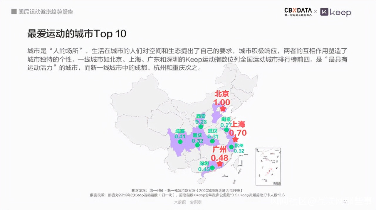 沒有合適的運動場景極大的限制了運動人口的增長。疫情期間,有超過80%的人都表示自己更重視也更願意運動了。其中一線城市的運動活力最高,北京、上海、廣東和深圳的Keep運動指數位列全國運動城市排行榜前四。