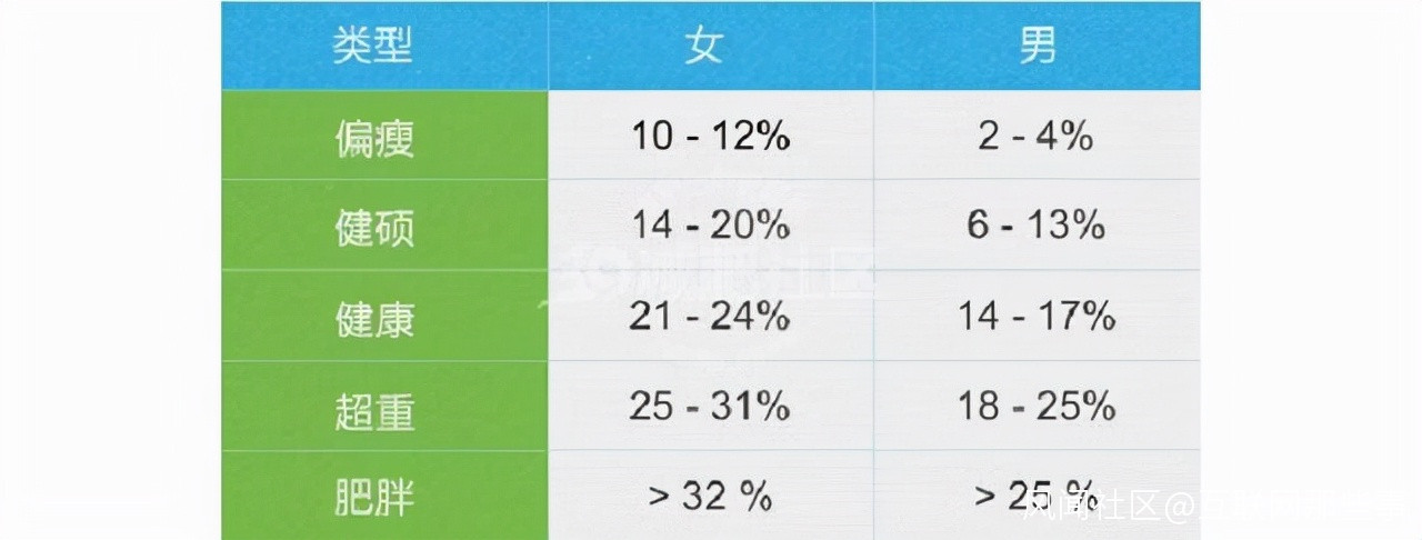 而過度追求低重量的大有人在,這也是短時間內他們無法看到成效後放棄運動的原因之一。下圖是一張體脂率對照表。