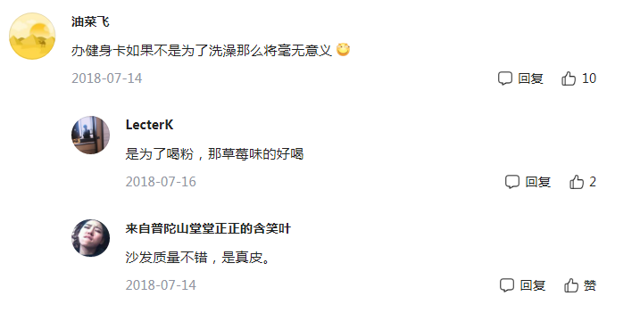 在一則關於“真健身與假健身”的帖子中,出現了這樣幾條評論: