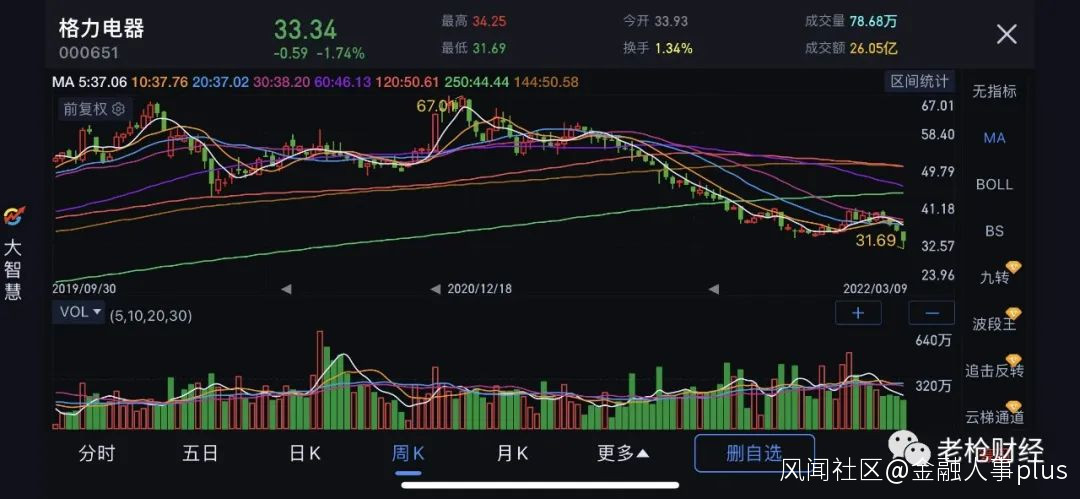 而且,當時有網友算過,以60%的質押率計算,就算珠海明駿把所有持有的9.02億股格力全部抵押,大概最後可以支持格力電器的股價極限為31.92元 。而2022年3月9日盤中,格力電器股價已經一度跌破31.92元, 最低跌到了31.69元 。