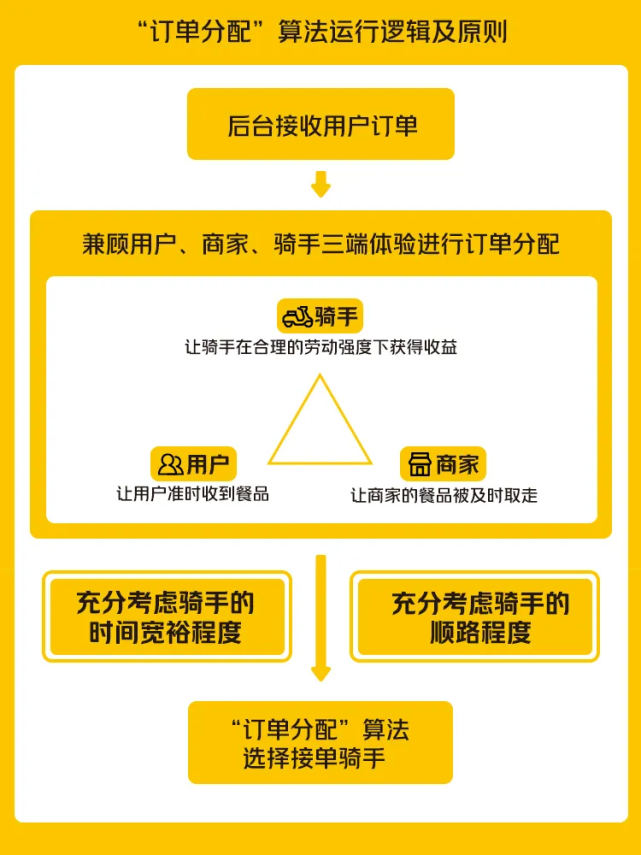 去年11月,美團外賣又公佈了“訂單分配”算法的運行邏輯及原則。