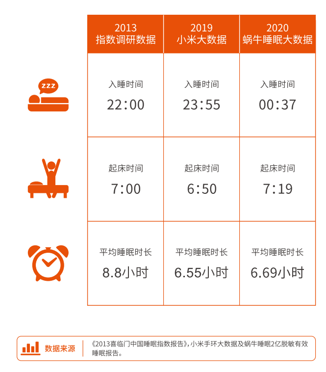 《2021喜臨門中國睡眠指數報告》研究發現,國人平均入睡時間越來越晚,2013年為22:00,到2020年則推遲到了00:37。