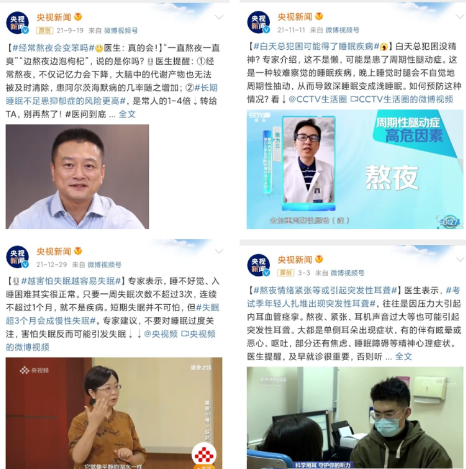 央視新聞、人民日報等官媒在社交媒體上,也一直嘗試從各個角度呼籲民眾早睡,注意睡眠質量。