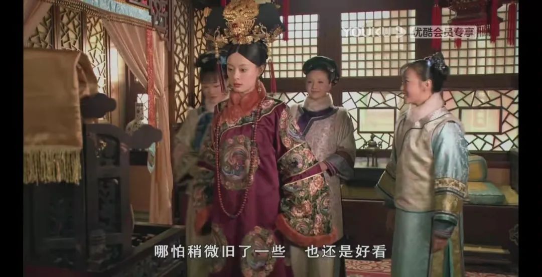 因為時間倉促,甄嬛封嬪時的吉服是敬妃的舊衣改制的,這一行為還得到了太后的讚賞。