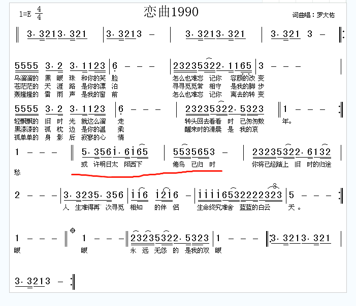 比如羅大佑老師的《戀曲1990》,最抓耳的副歌第一句,組成音只有4個,節奏也是在第一拍和第三拍,使用了相同的八分音符附點+十六分節奏: