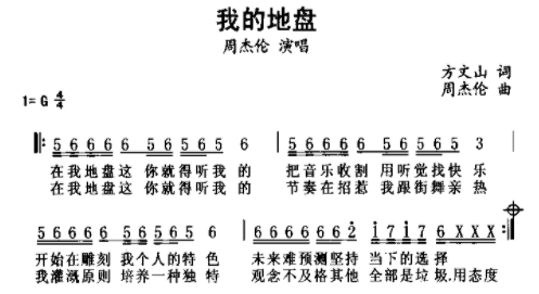 比如《我的地盤》,副歌每一句都是2~4個音就寫出來: