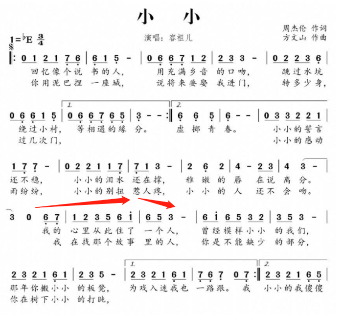 為容祖兒創作的《小小》,最抓耳的副歌第一句,就是個節奏均勻的持續上行再下行回來: