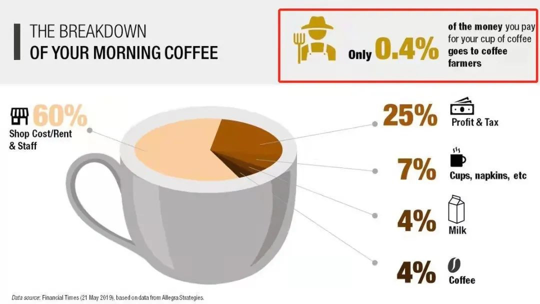 另據經濟學家計算,一杯30元左右的咖啡,落到咖農手裏的部分,竟然只有兩毛錢。而有了雲南咖啡“做嫁衣”,跨國資本得以大肆擴張中國咖啡市場,賺得盆滿缽滿。