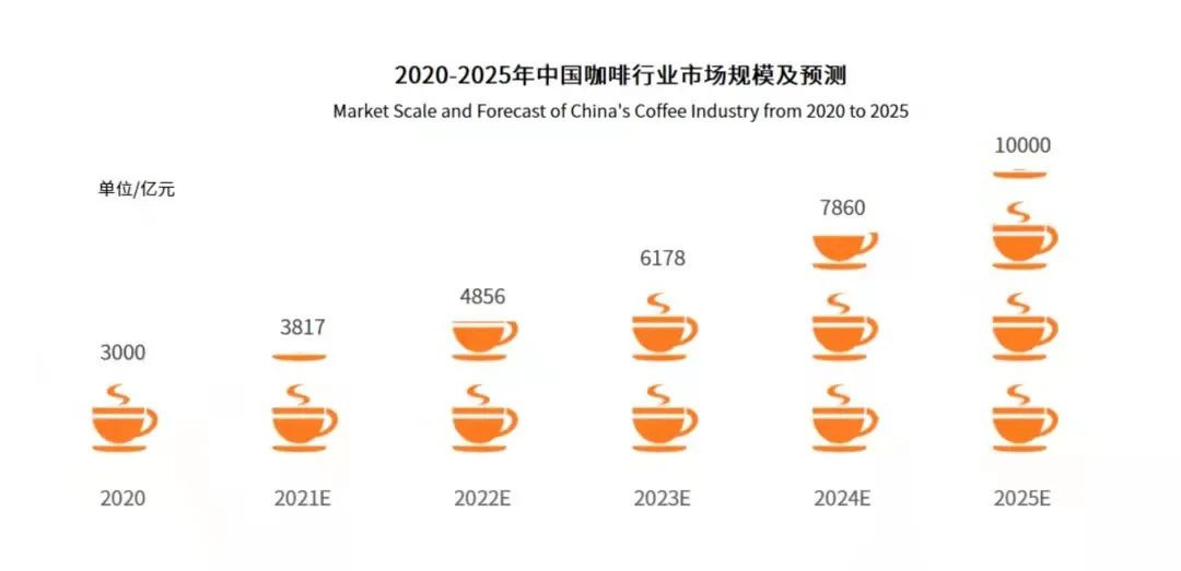 據艾媒諮詢數據顯示,2021年中國咖啡市場規模約3817億元,正進入高速發展階段,預計2025年,中國市場規模將達10000億元。