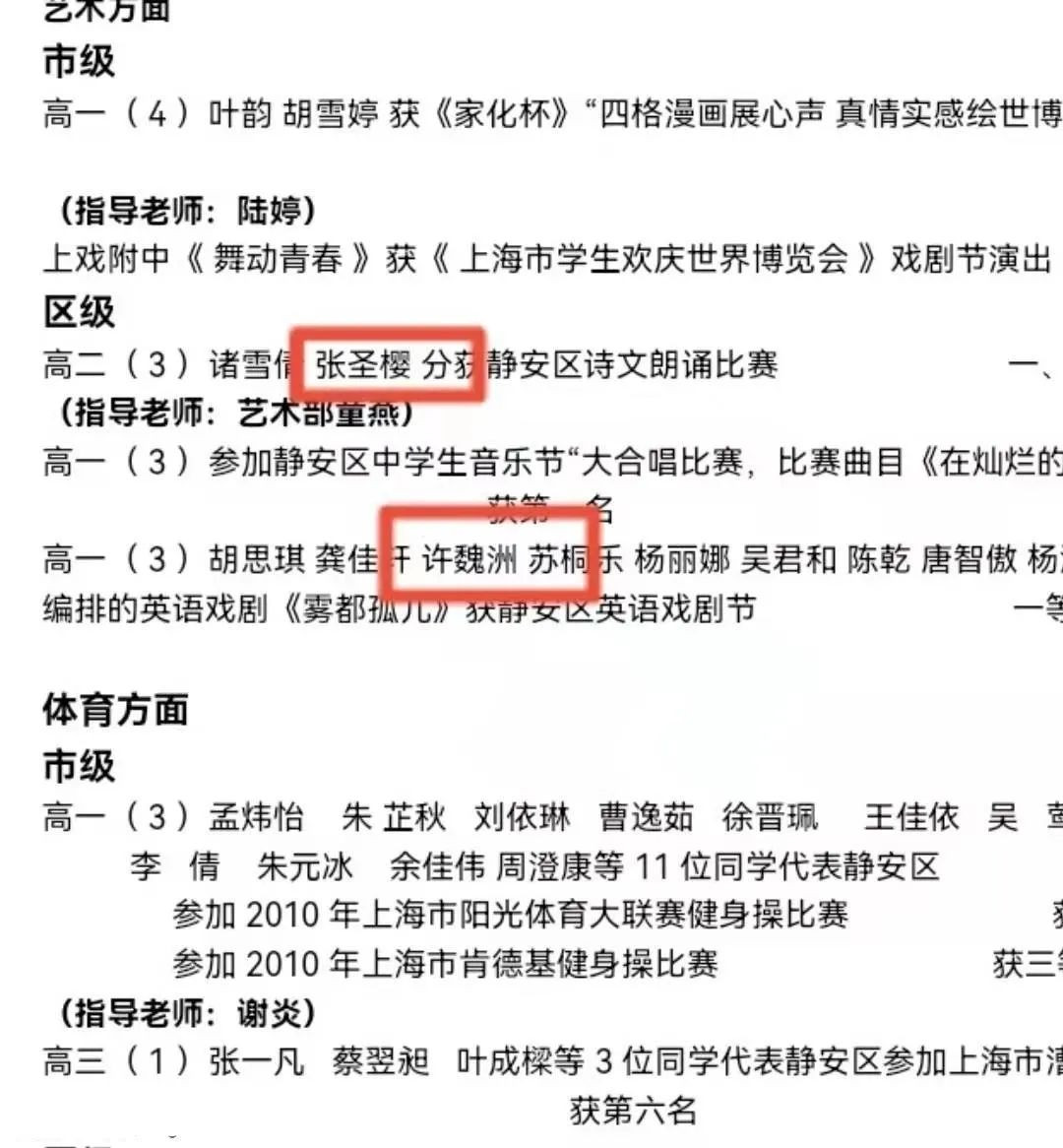 有了名字做方向,福爾摩斯附體的網友們火速從上戲附中的一些資料裏確認了,許魏洲真有個學姐叫張聖櫻。