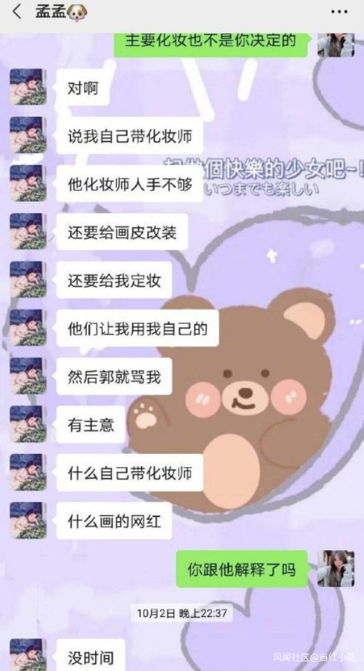 實際上,曬出的跟孟子義的聊天截圖裏,全是孟子義吐槽小四的。
