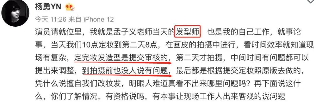 孟子義的造型師也發聲,説定妝後到拍攝前,大家都沒有提出異議。