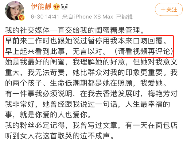 伊能靜緊急錄了小視頻解釋,這些評論都是閨蜜用她的口吻代回的,與她無關。