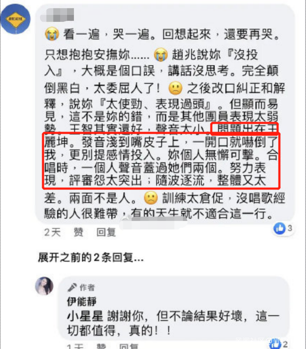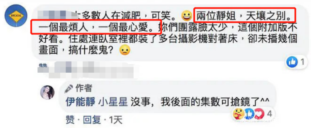 粉絲拉踩寧靜,伊能靜又剛好挑到這個留言: