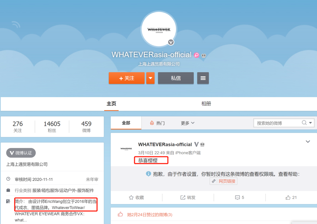 點進去他主頁的置頂微博,評論裏的公司官微,就是他自己的服裝品牌。