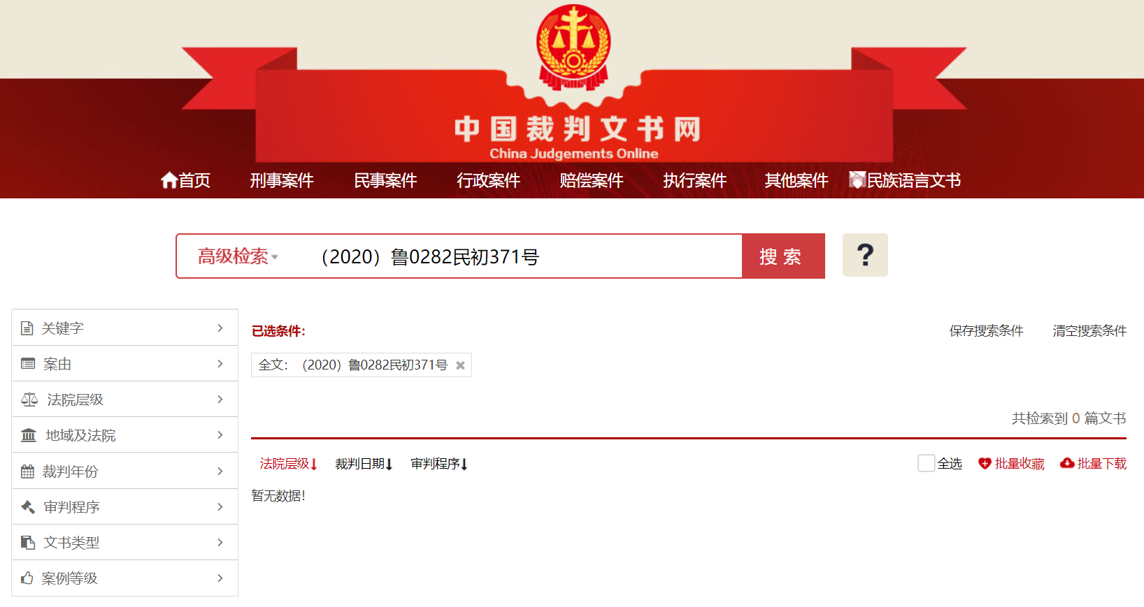 文書網上將相關案號輸入後並沒有搜索到相關案件