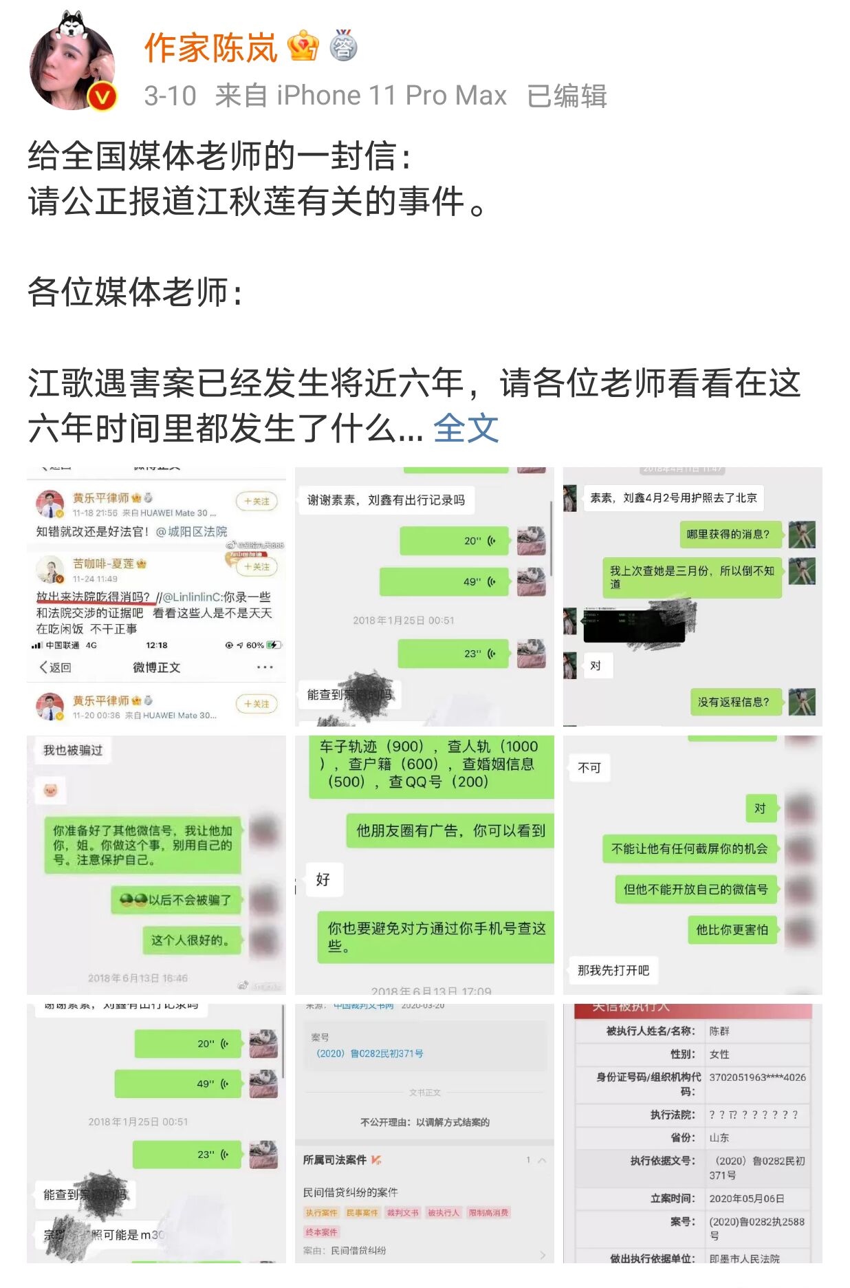 就在前幾天,作家陳嵐在微博上發文,對江歌案中當事人劉鑫的遭遇感到不平,同時質疑江歌的母親用網上募集給的她的捐款放高息貸。