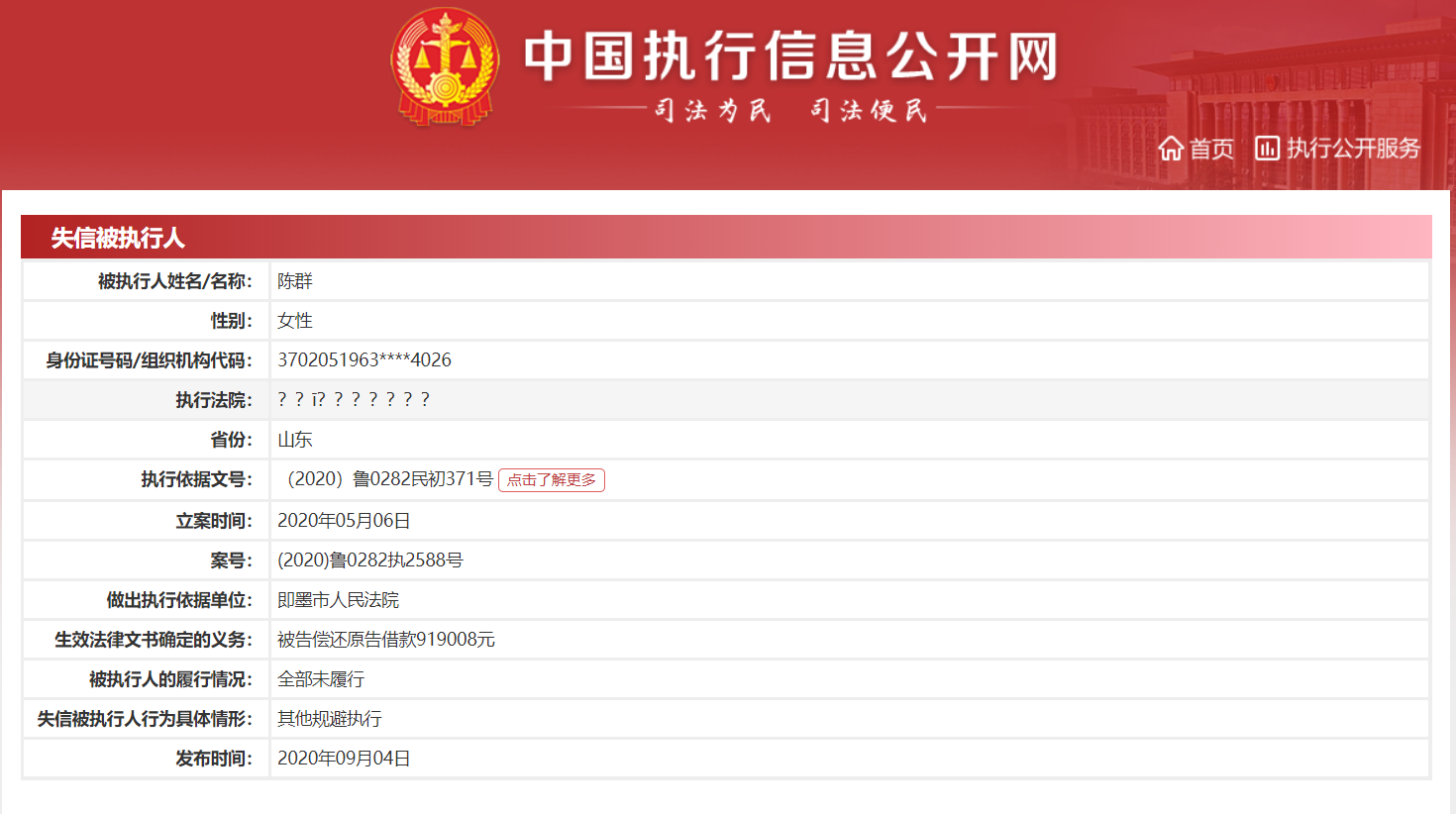我稍微搜索了一下陳嵐提供的文書網上和執行網上的相關信息,在執行網上搜索到了她提到的江歌母親借貸的案件。