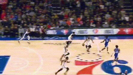 不過76人在這段時間的進攻還湊合,因為籃網小得離譜,76人明顯大一圈的陣容,籃板佔了便宜。