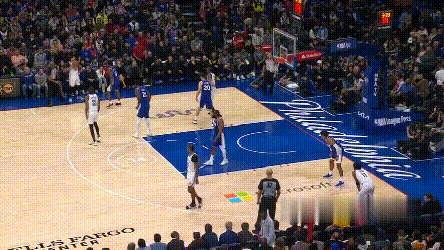**恩比德在場時,76人的進攻基本會優先找恩比德,且優先級非常高。**哈登作為上球輔助,馬克西更多是快攻、定點溜縫,第一節初段攻堅點本就不在後兩人這裏。哈登第一次下去休息前,問題不在投不進,而是發起選擇有問題: