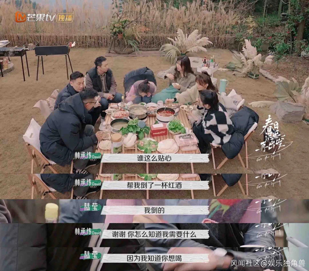 **其二則是李松蔚所説的團體代理理論:通過磕CP的行為,讓團體成員間迅速破冰。**這也是Rock曾經在脱口秀中調侃的“人類最大的愛好,就是看別人搞對象”。因為一句“我很獨立”、一個擁抱、以及各種暗戳戳的小眼神而迸濺出微妙火花的林承緯和陸瑩,成為其他人集體吃瓜的前沿陣地。