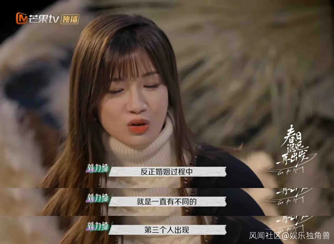 以劉力綺為例,“兩個人的電影,卻有第三個人看過”背後驚現時間管理大師,但更可怕的是來自身邊親朋好友“為了孩子需要忍耐”的精神洗腦,以及長期遭遇來自對方的對身材外貌上的攻擊,所造成的的自卑感。離婚的真相一步步被揭開,彼時的節目也略微有了一絲絲《再見愛人》味道。