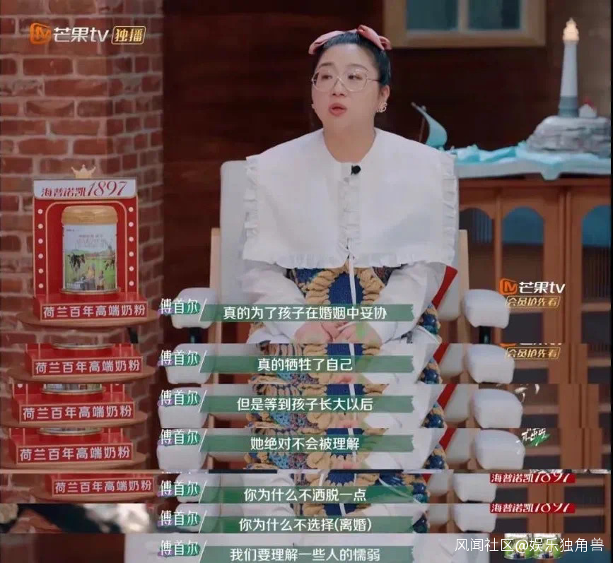 **觀察團同樣承擔起了觀點輸出的功能。**面對劉力綺為了孩子選擇忍耐的困惑,吳克羣分享了自己小時候的遭遇,表示直到與“相愛不會相處,分分合合”的父母和解,才從這是我的錯的認知裏解脱出來;傅首爾認為“我們要原諒一些人的懦弱”,但同樣地也要承認自己的感情、正視選擇,而不是將一切推給孩子。