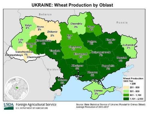 上圖深綠色的地區為烏克蘭小麥主產區