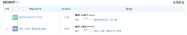 據天眼查資料顯示,目前鄧倫旗下實控2家公司,其本人全部全資持股並擔任法人代表。其中,鄧倫(上海)影視文化工作室成立於2016年6月,註冊資本10萬元人民幣,為個人獨資企業。舟山鄧倫影視文化工作室,成立於2018年3月,註冊資本100萬元。