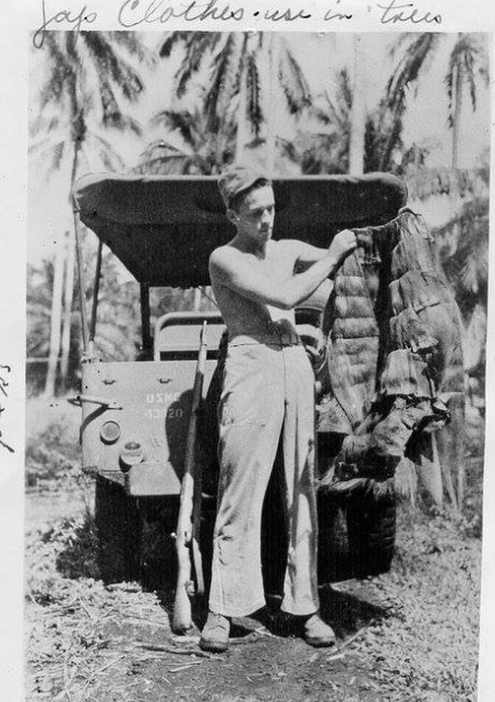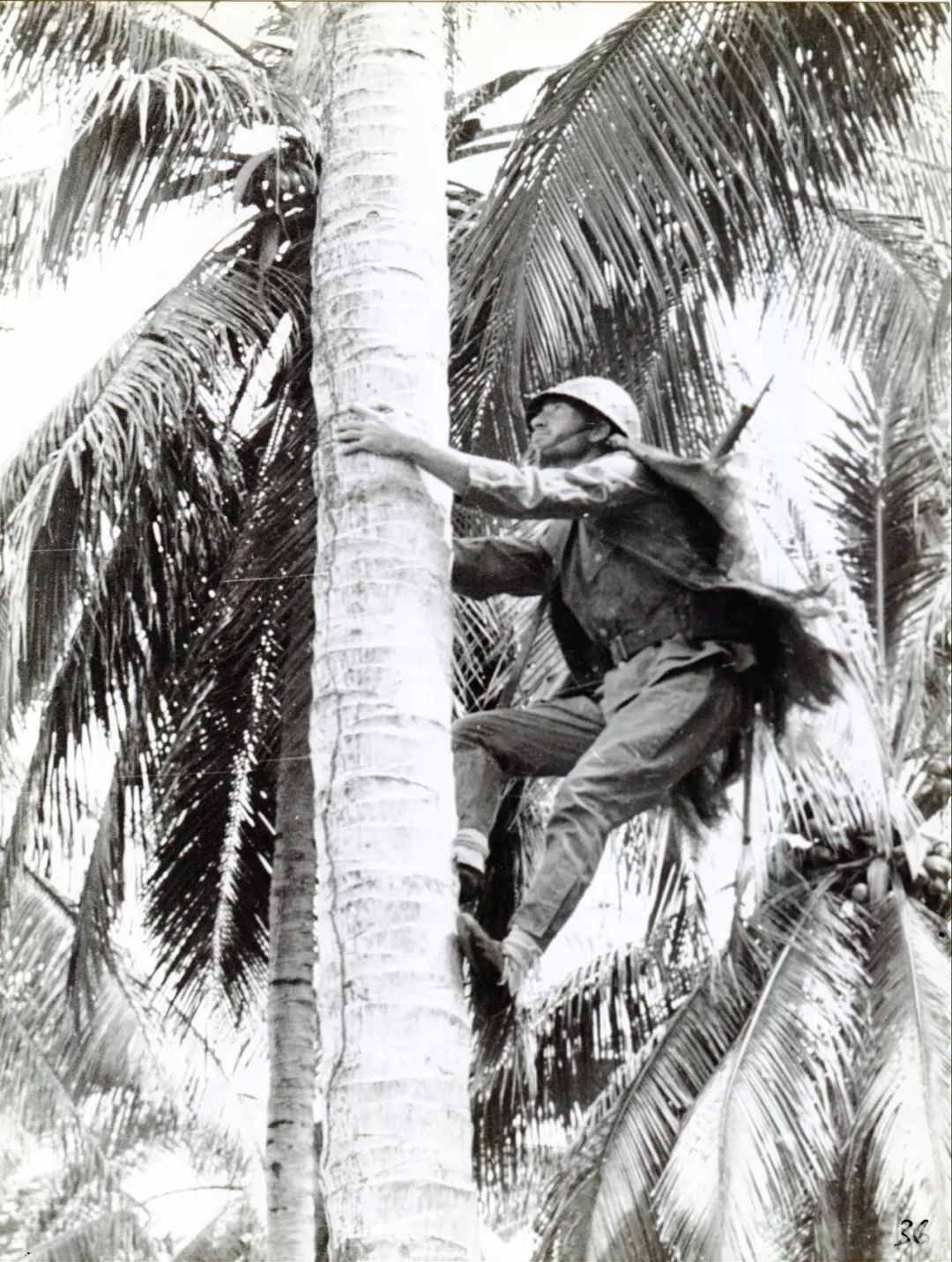 日軍狙擊手把熱帶棕櫚樹的樹葉做成蓑衣,穿着專門定製,鞋底有小鐵刺的爬樹鞋,臉上塗着油彩藏到樹上狙殺美軍。一開始美軍很頭痛,捱了揍都不知道拳頭是哪來的,後來漸漸才明白重火力才是對付狙擊手最有效的辦法。
