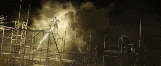 最終決戰,荷蘭弟的MJ被綠魔扔下大橋,加菲蟲緊接着跳了下去。