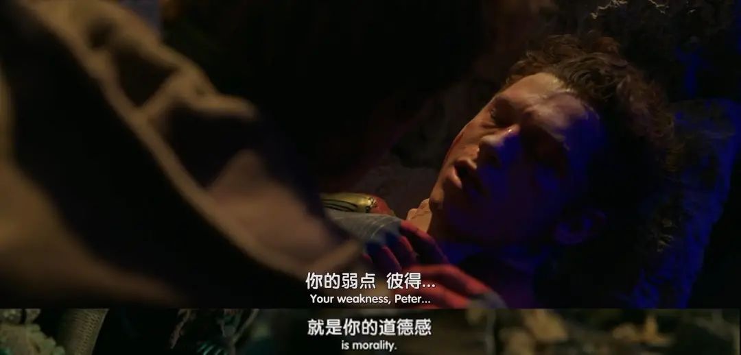 上部片尾,神秘客臨死前將**“蜘蛛俠是彼得·帕克”**的秘密身份捅了出來。