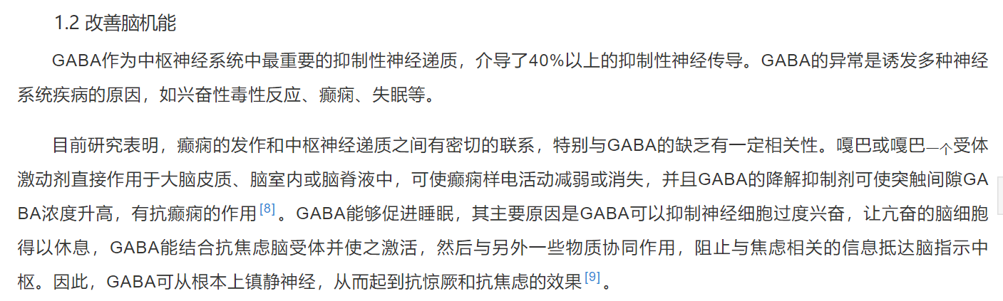 首先,在黑零“GABA氨基丁酸睡前軟糖”的產品介紹頁面,商家引用學術論文證明GABA在食品中的應用,但是論文中並未明確提及口服GABA可以改善睡眠。只是通過生理機能層面説明GABA在人體中的作用原理。