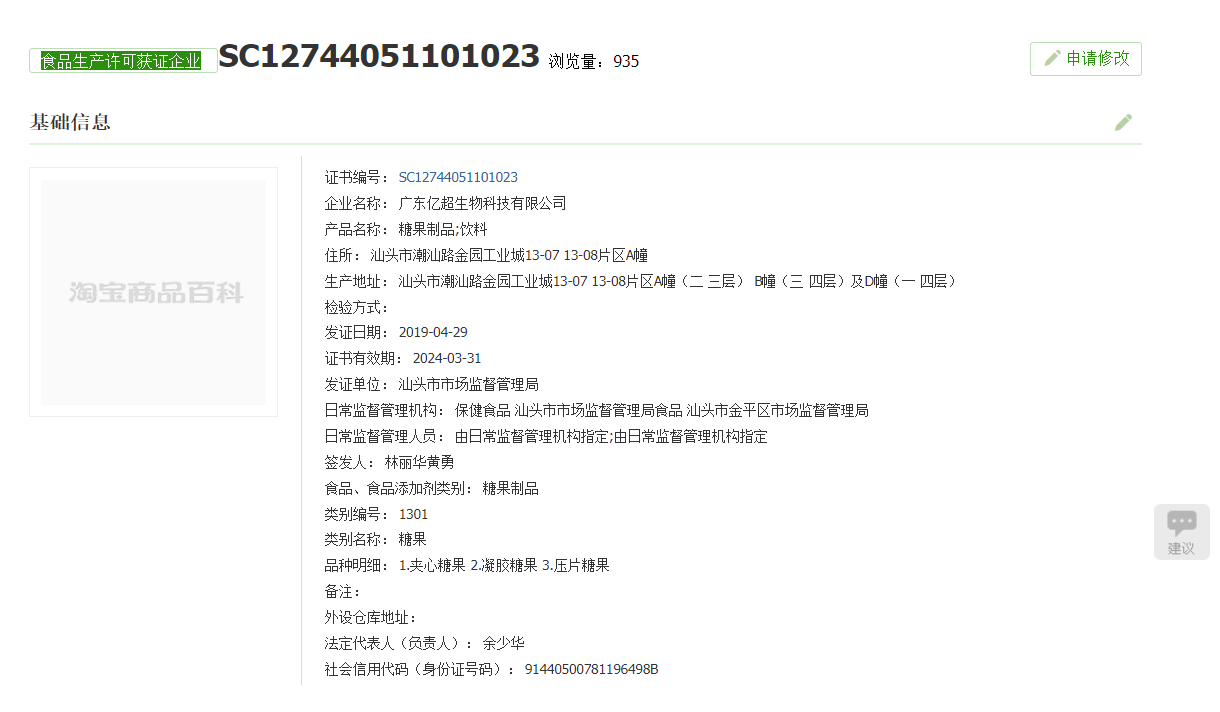 根據黑零旗艦店提供的商品生產許可證,我們可以查驗到“GABA氨基丁酸睡前軟糖”的類別是“糖果”。